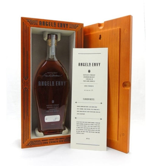 Ranked the "Best Spirit in the World" by Spirit Journal, Angel's Envy Cask Strength Bourbon Finished in Port Barrels is unlike any whiskey you've ever tried. Angel's Envy is releasing fewer than 8,000 bottles of our award-winning Cask Strength this year, so don't miss your chance to pick up a bottle or two of this rare and delicious spirit.Perfection is a patient man's game. So we waited until Angel's Envy reached the perfect level of maturity. We judge only a handful of barrels exceptional enough for our lengthy finishing process. The result? Even at 124.6 proof-our highest ever-every sip is worth savoring.A remarkably complex and unfiltered spirit, we suggest you enjoy it neat or with just a splash of water to release the flavor nuances, and perhaps with a few friends who appreciate outstanding whiskey. Angel's Envy Cask Strength was worth waiting for, now it's worth sharing.APPEARANCERich gold with an amber depthNOSERose petals, dense fruitcake, fresh strawberries, cracked black peppercorns, clovePALATECaramel coffee, dried fig, aged tobacco, toasted sourdough breadFINISHRich and buttery, add water to soothe the burn and let the finish lingerBottle Size: 750mlIncludes Luxury Wooden Display Case