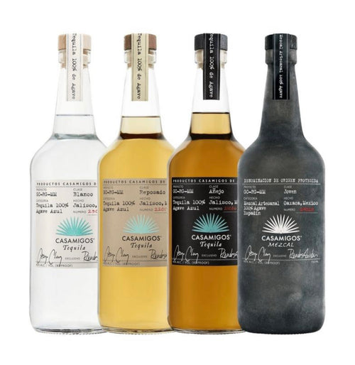 1 Bottle of Casamigos Blanco 750ml, 1 bottle of Casamigos Reposado 750ml, 1 bottle of Casamigos Anejo 750ml & 1 bottle of Casamigos Mezcal Tequila 750ml.Casamigos, a small batch, ultra-premium tequila made from the finest, hand-selected 100% Blue Weber agaves, grown in the rich red clay and cool climate of the Highlands of Jalisco, Mexico for a minimum of seven years. After harvest, the agave piñas are roasted in traditional brick ovens for 72 hours, before undergoing an extra-slow fermentation process over an additional eighty hours, nearly double the industry standard. Casamigos Blanco Tequila rests for 2 months and is crisp and clean with hints of citrus, vanilla and sweet agave, with a long smooth finish.