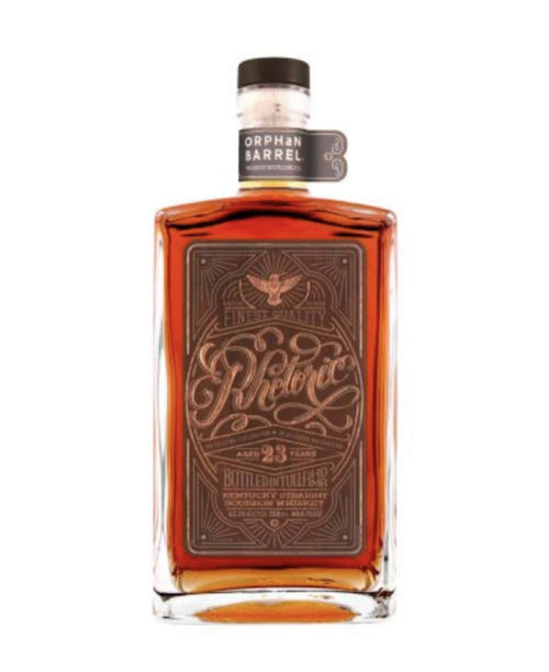 he next iteration of Orphan Barrel’s progressively aged series, RHETORIC ™ Kentucky Straight Bourbon Whiskey Aged 21 Years speaks to whiskey enthusiasts with much persuasiveness as another year in the barrel bursts with new smells, flavors and tastes. This evolutionary process bangs a louder beat to the dance of discourse as the liquid is richer and more complex with a slightly higher proof.Aromas of cherry, sweet tobacco, honey and leather build upon the oak, fruit, vanilla and caramel of its counterpart with new tastes of sweet tobacco, dark chocolate, baking spices and honey.Beginning with an oaky and leathery nose hinting of vanilla, caramel and honey, Rhetoric 21-Year-Old tastes of charred wood, black pepper spice, dark chocolate and baking spices before a long, woody finish.Bottle Size: 750 ml